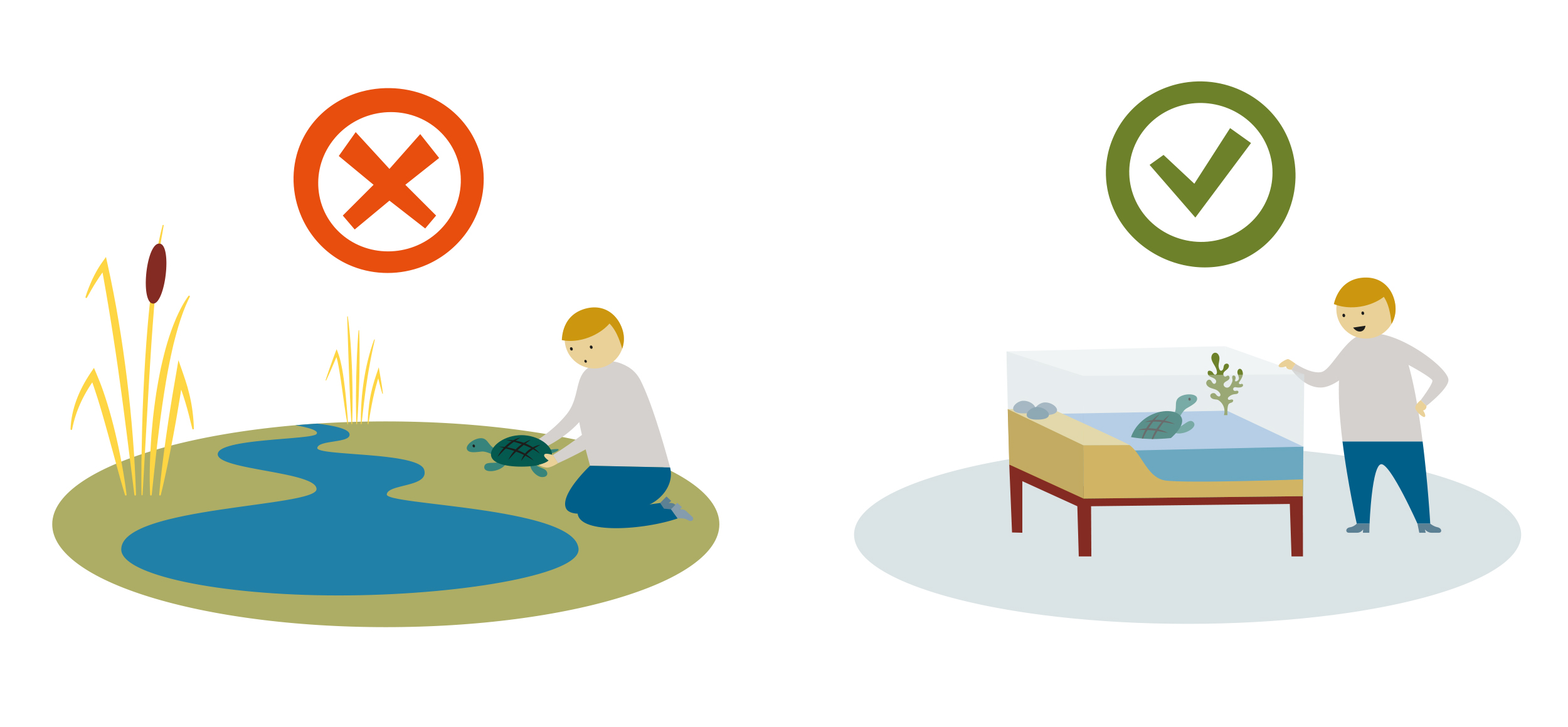 - rödörad vattensköldpadda (Trachemys scripta elegans)