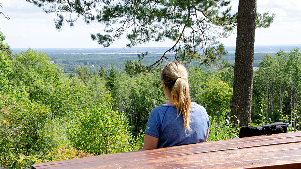 Motiv: Kvinna som blickar ut över utsikten från Svensbodaberget